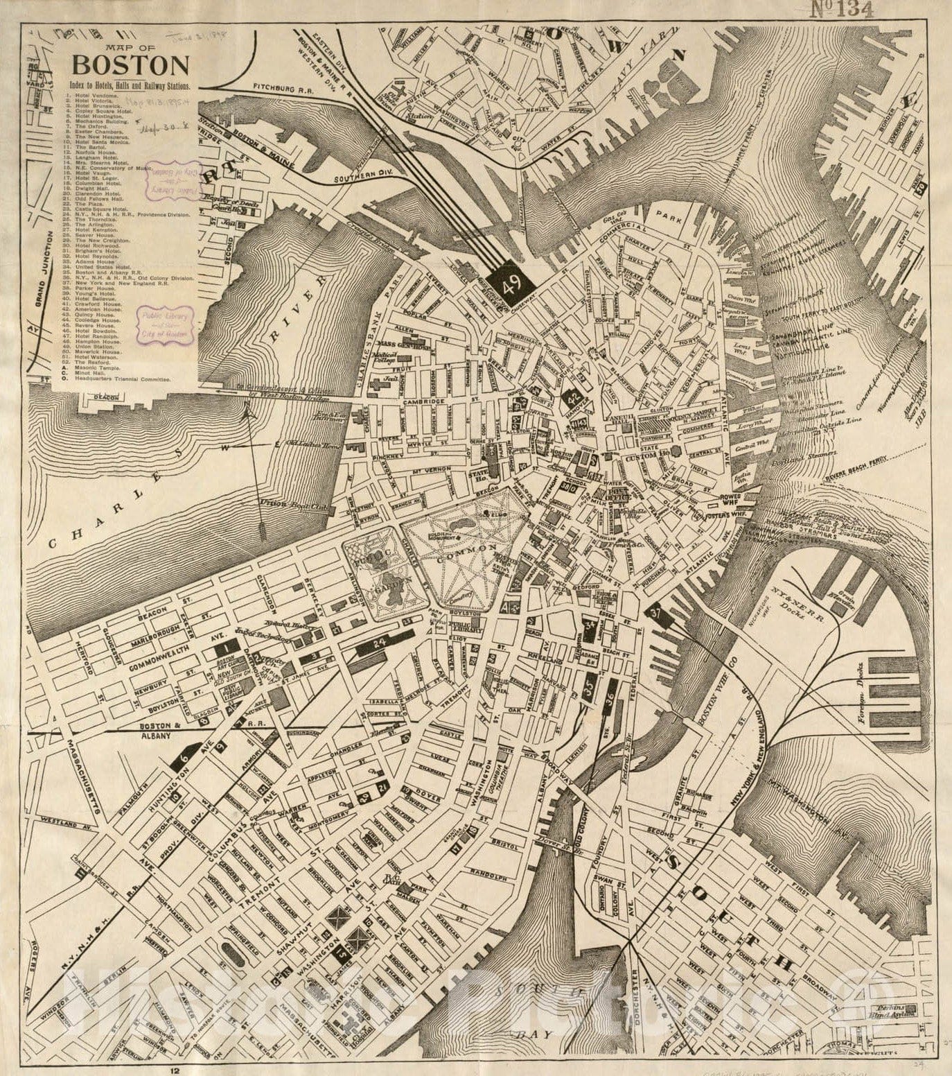 Historical Map, 1895 Map of Boston, Vintage Wall Art Historic